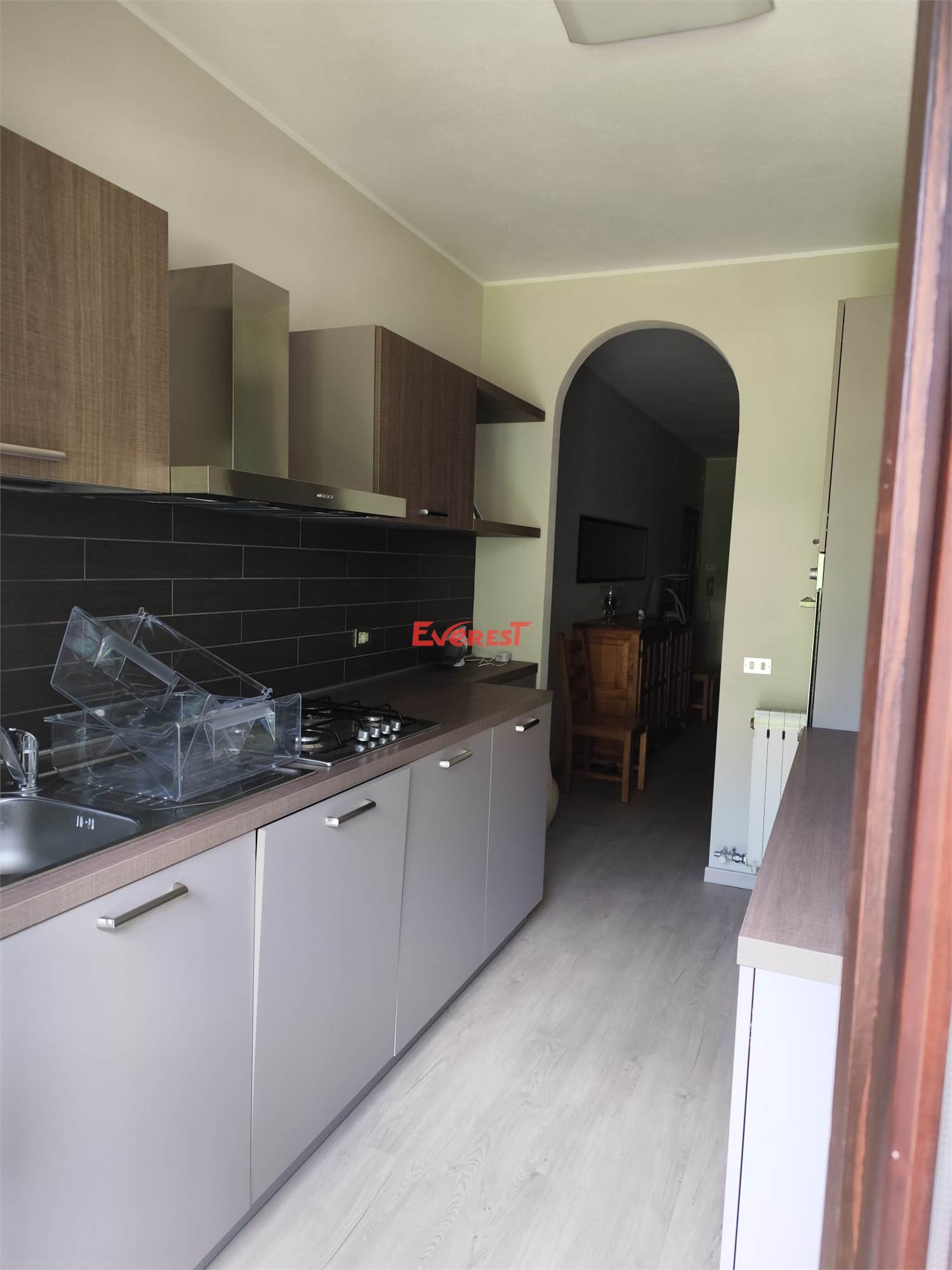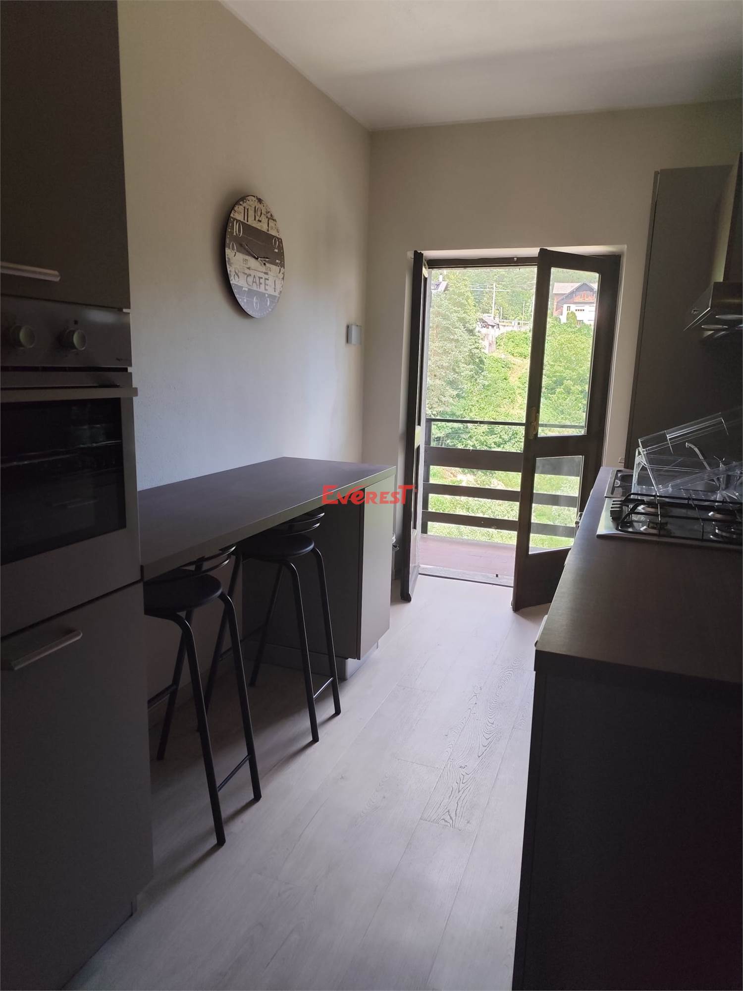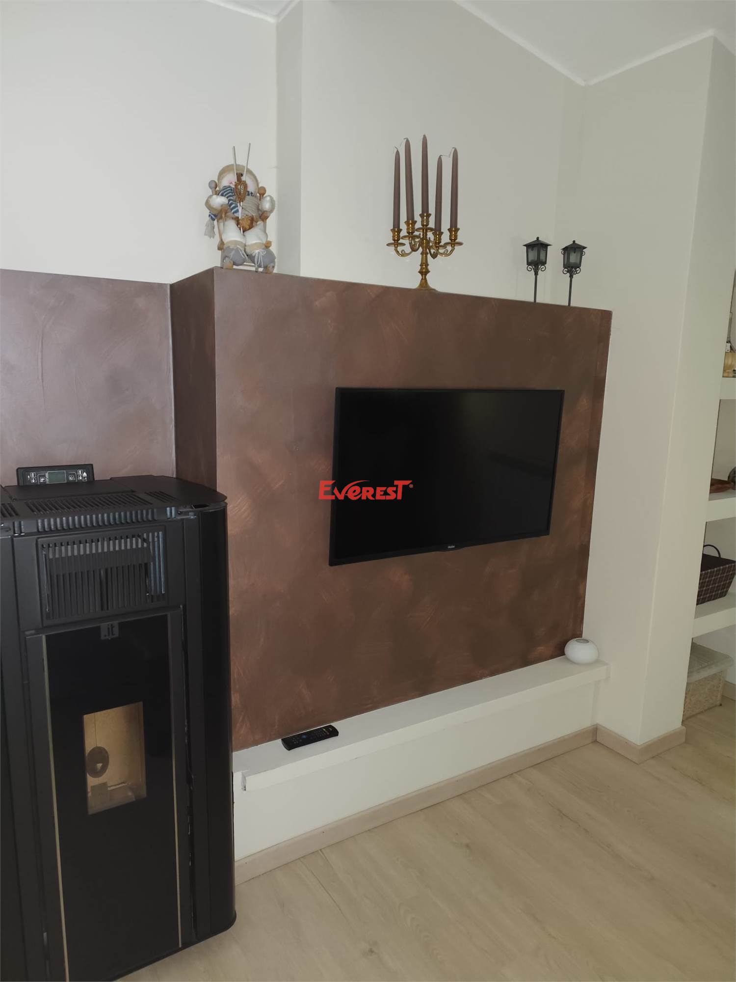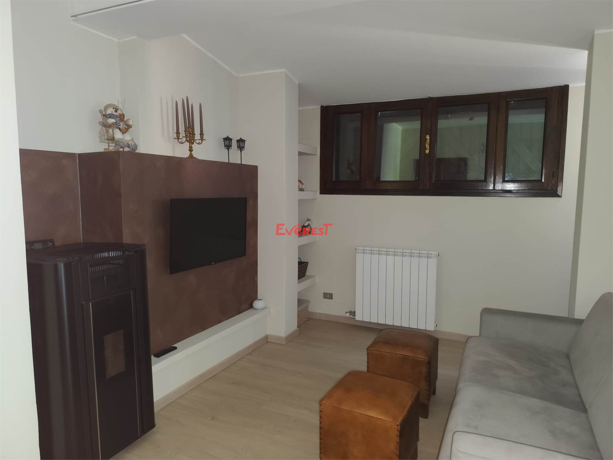 L’alloggio viene venduto completamente arredato, con cucina nuova. È presente un riscaldamento centralizzato con termostato regolabile e una stufa a pellet che distribuisce aria calda anche nella camera e nel bagno.